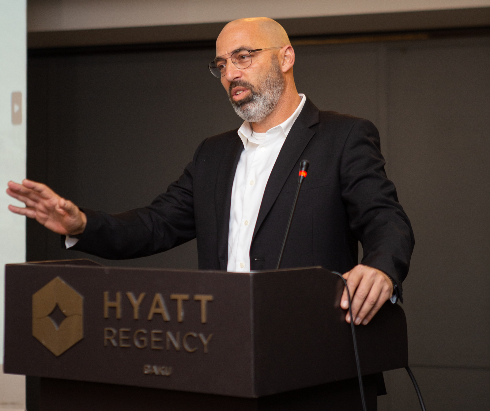 The conference began with a welcoming speech by "Mr. Alex Kaplun", President of the Israel-Azerbaijan Chamber of Commerce and Industry. He expressed his joy at returning to offline events, noting that this was the first event held since the war. Furthermore, "Mr. George Deek", the Israeli Ambassador to Azerbaijan, delivered a speech discussing the difficult times Israel has faced over the past year and a half, as well as the hostages still held by Hamas. He also expressed hope for future collaboration between Azerbaijan and Israel, particularly in the fields of the digital economy and reconstruction efforts in Karabakh.